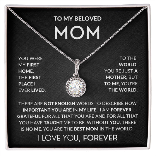 To My Beloved Mom | "First Home, Forever Grateful" | Crystal Drop Necklace
