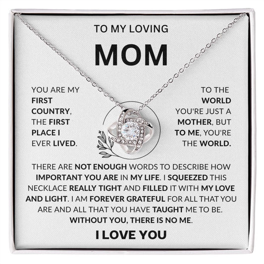 To My Loving Mom | "To Me, You are the World" | Love Knot Necklace