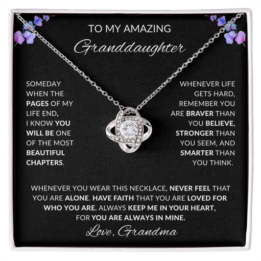 To My Amazing Granddaughter, Love Grandma "You will be on of the most beautiful chapters" | Love Knot Necklace