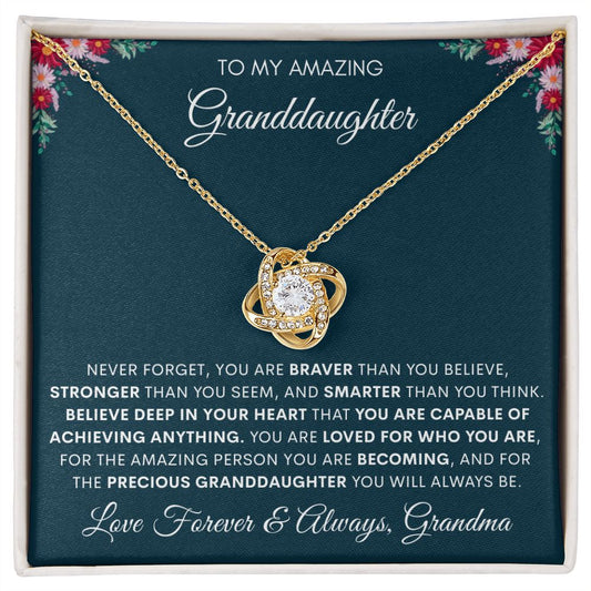 To My Amazing Granddaughter. Love Forever & Always, Grandma "You Are Loved For Who You Are" Knot Necklace