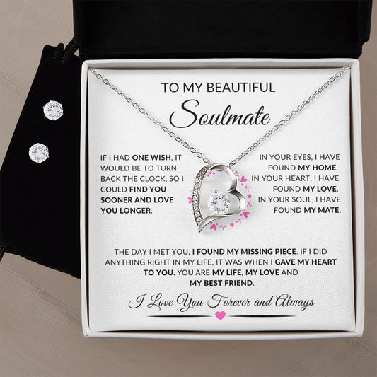 To My Beautiful Soulmate | Forever Heart, Earrings Set "I Found My Missing Piece"